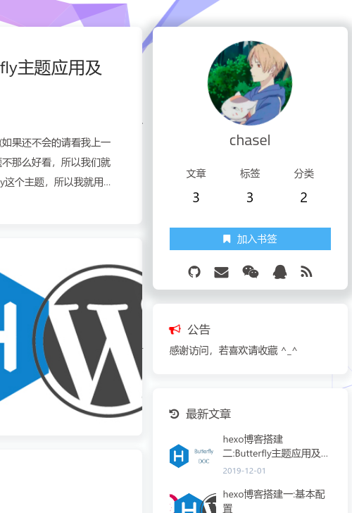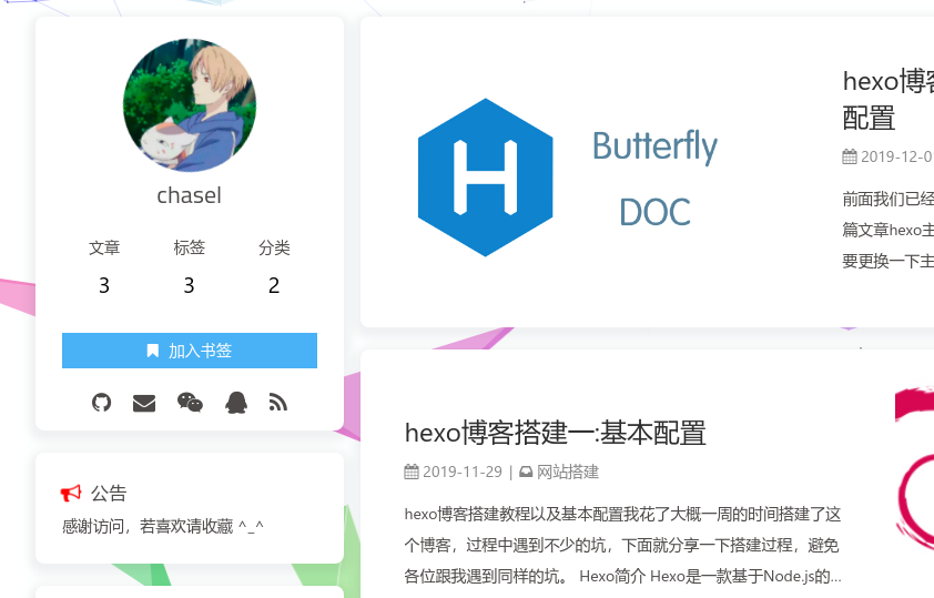 Butterfly这个主题总的来说功能比较齐全,该有的功能都有,而且大多数都有多种方案可以选择或者自定义。但是由于元素较多,如果用只用GitHub Page来搭建的话渲染比较慢,我会在后面更新一个自定义域名同时绑定GitHub和Coding达到域名分流来解决渲染慢的问题
