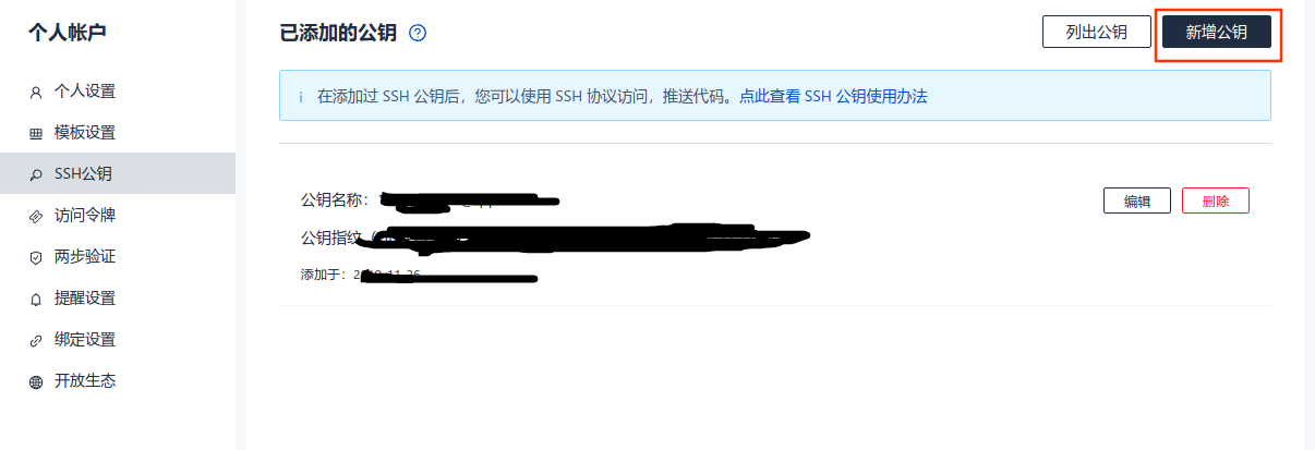 - 导入公钥,可以用之前生成github的公钥![]()