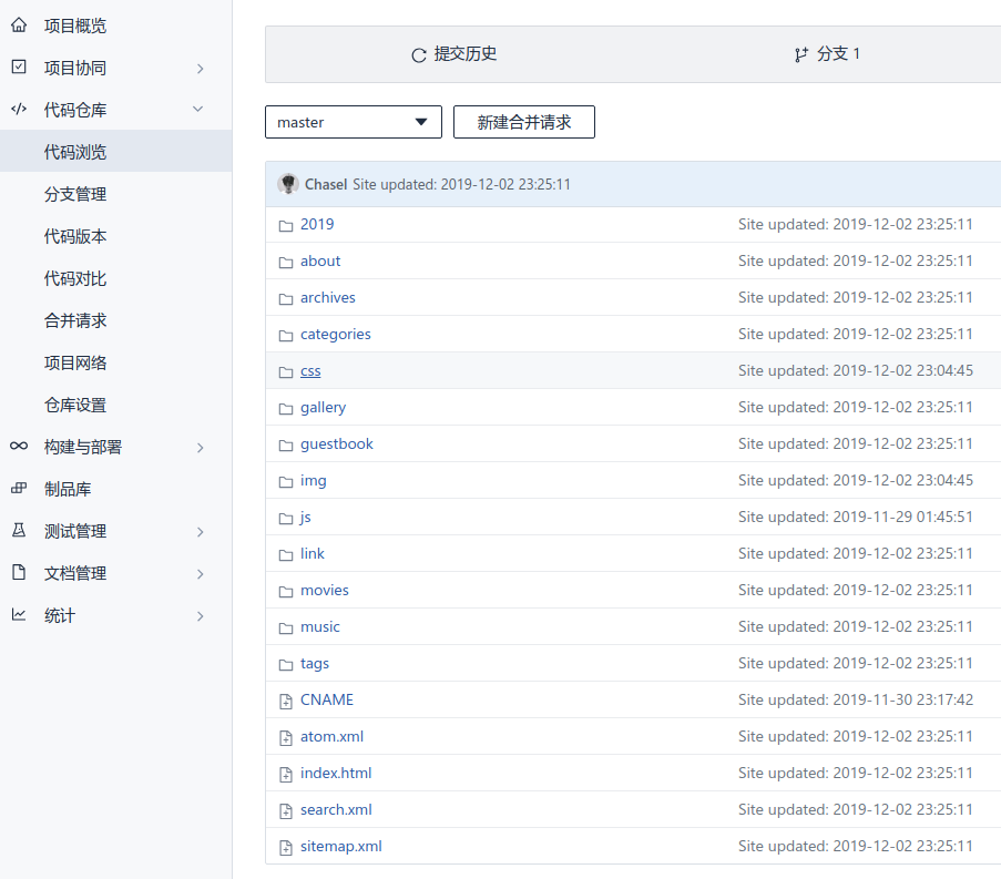 - 把本地文件上传到coding上这个时候我们已经看到我们的配置文件已经上传上来了hexo g